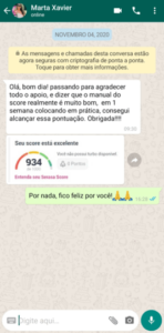 Só tenho a agradecer, consegui ter meu primeiro cartão de crédito só depois que comprei o método de vocês, muito obrigada mesmo, o score estava em 237 e depois de 5 dias subiu para 570 e agora esta em 859 muito obrigada gente realmente funciona.🙏
